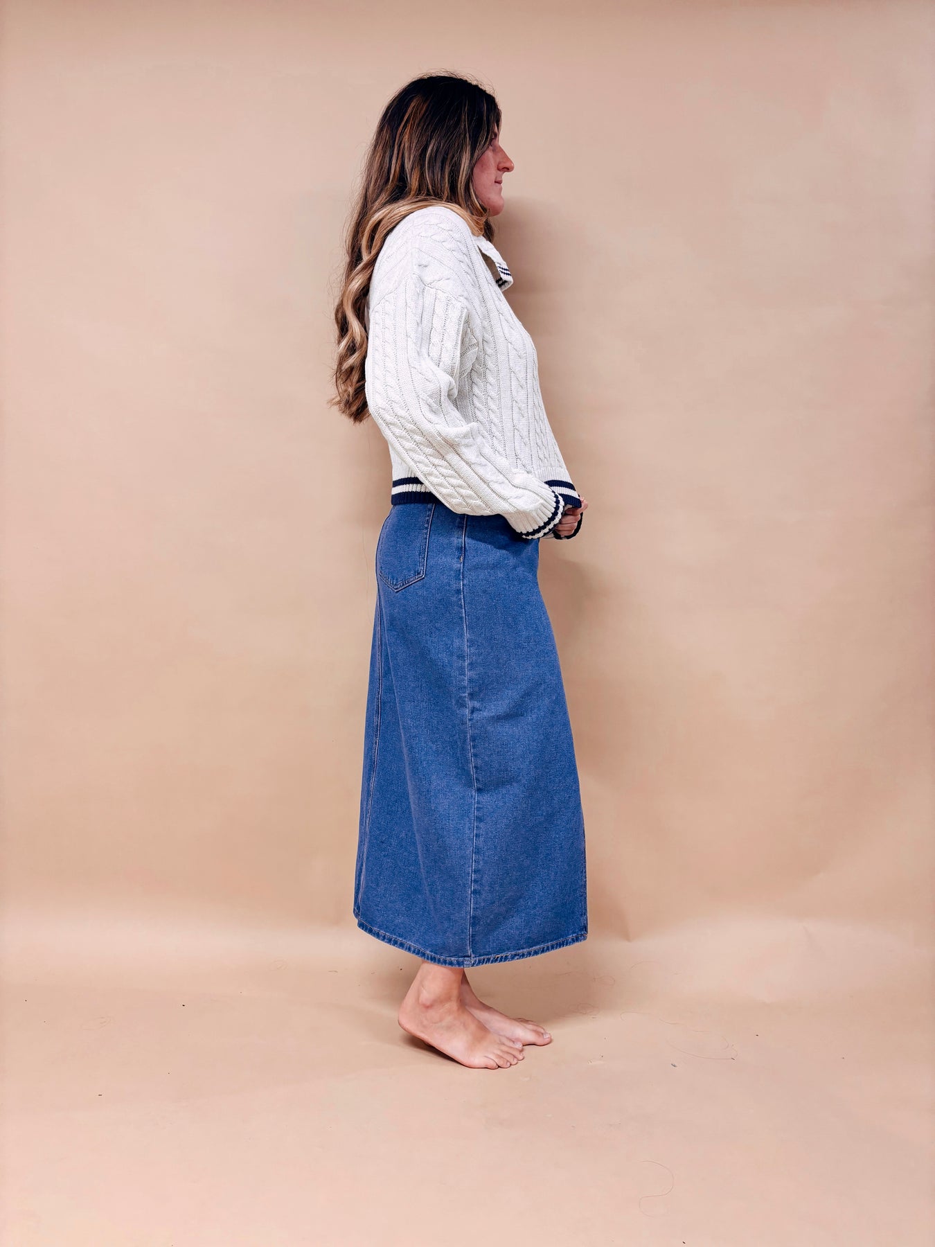 The Rosie may look a little familiar and that's because we keep coming back to her every season! Designed in a neutral color block, with a statement collar, and an exceptionally soft knit material, this piece will be one you pull out of your closets for many outfits to come!